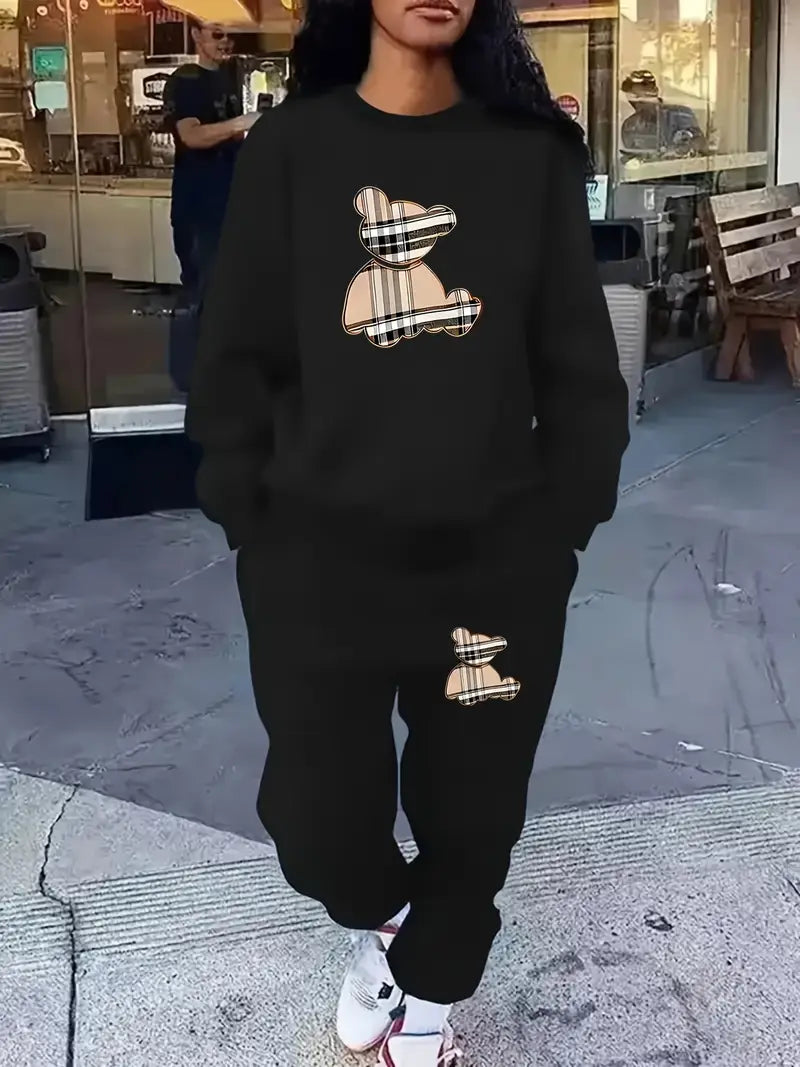This matching set features a cute plaid teddy design, giving your outfit a fun and fashionable twist. Perfect for errands, lounging, or street-style looks.